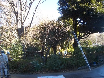 ウメの剪定(バックヤード) | 時期遅れだが丁寧に剪定 |