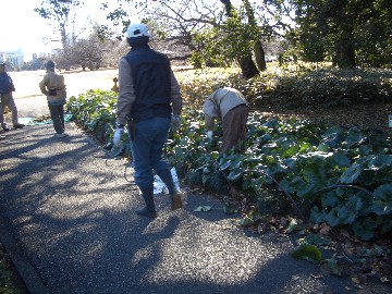 タイワンホトトギスの刈り込み(日本庭園) | カンナの刈り込み(新宿門前) |