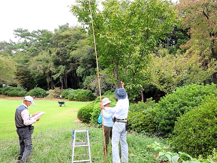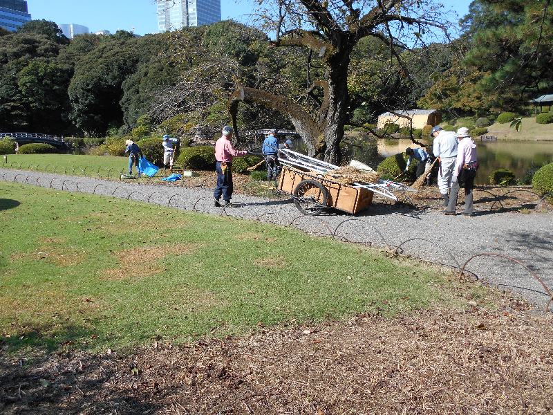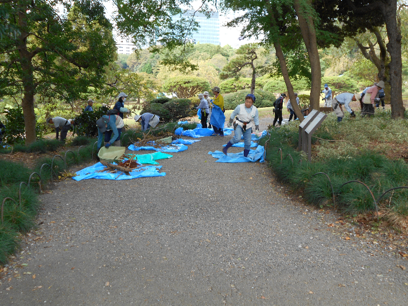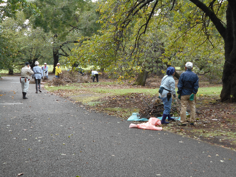 〇Aグループ 管理事務所前芝生間の園路沿い、玉藻池奥の園路沿い及び大木戸門と同休憩所周囲の落下枝・倒木等の収集・処分