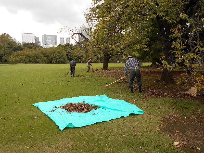 〇さくらチーム 管理事務所前及び大温室前の芝生の落下枝等の収集・処分
