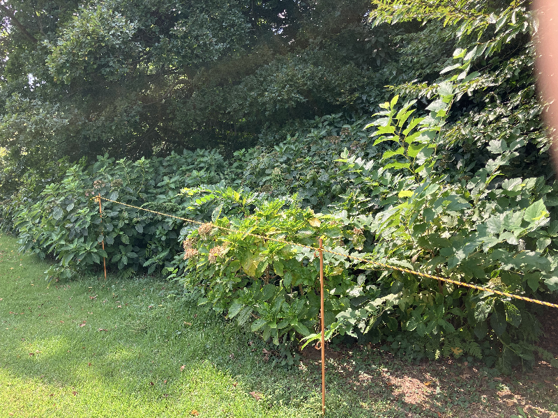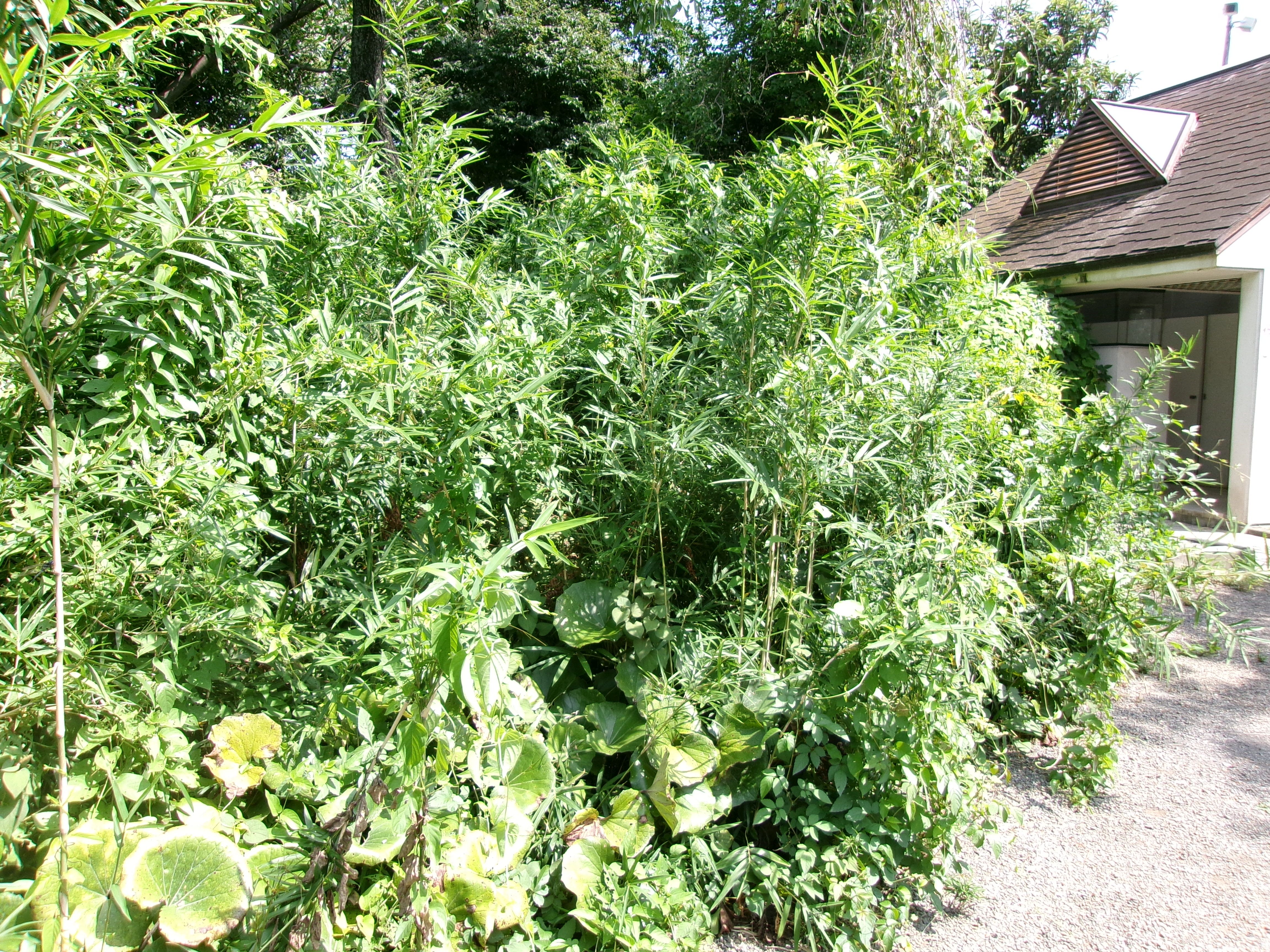 ササがかなりの高さになってしまい、ツタ類も絡まって奥が見えない状態
