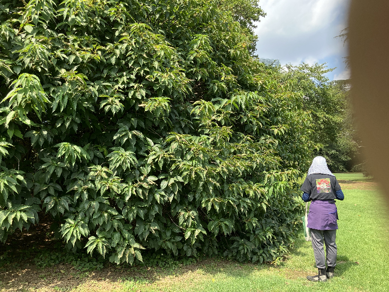 地面につきそうなくらいまで枝が伸びたハチジョウキブシ
