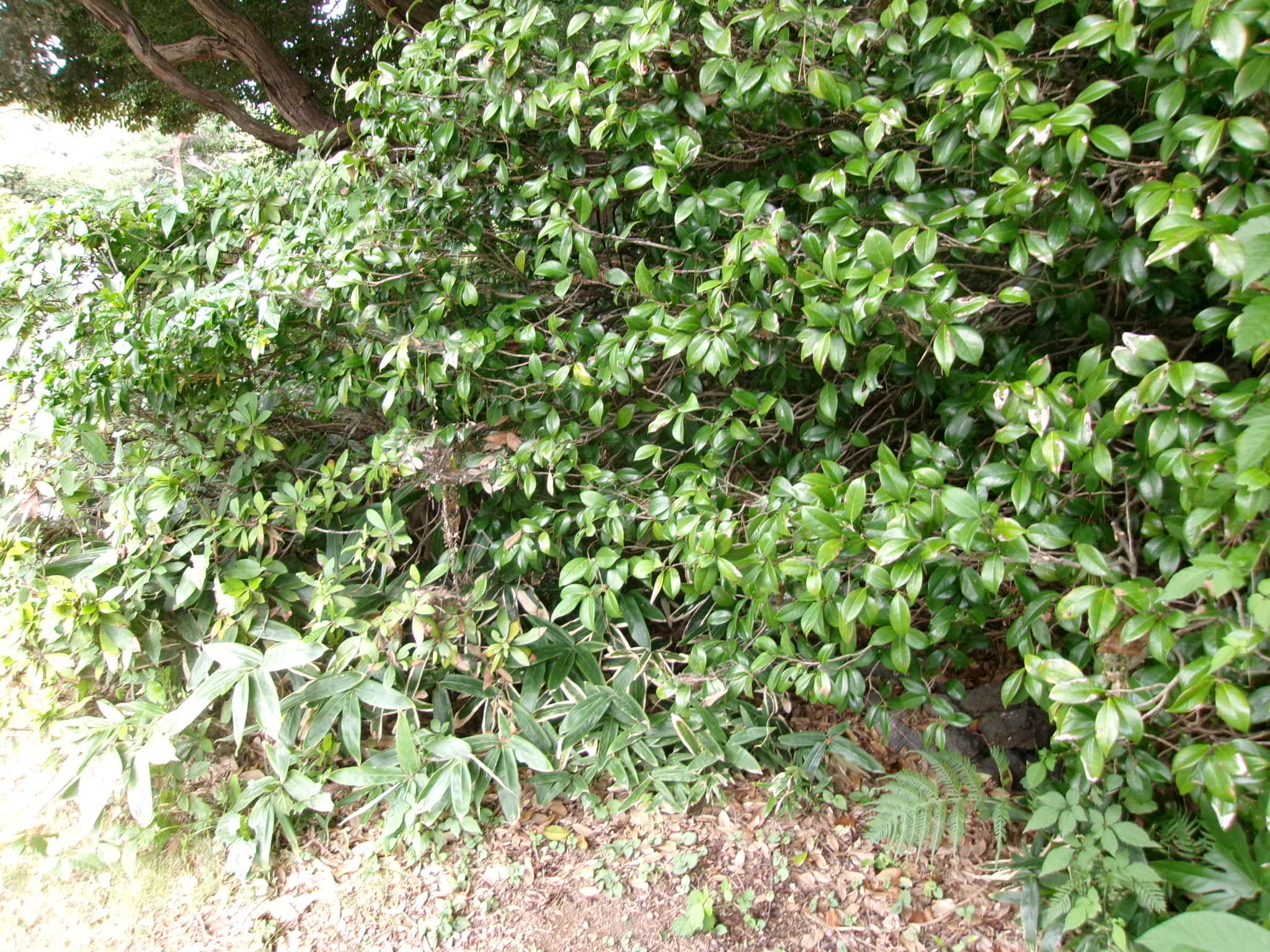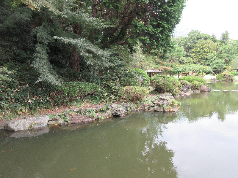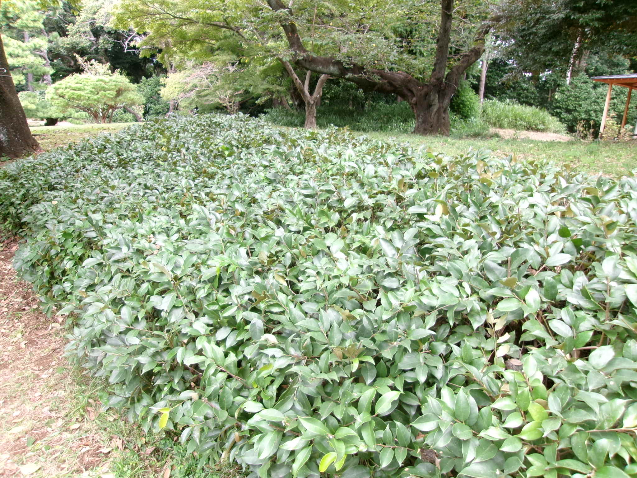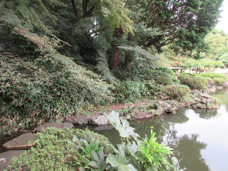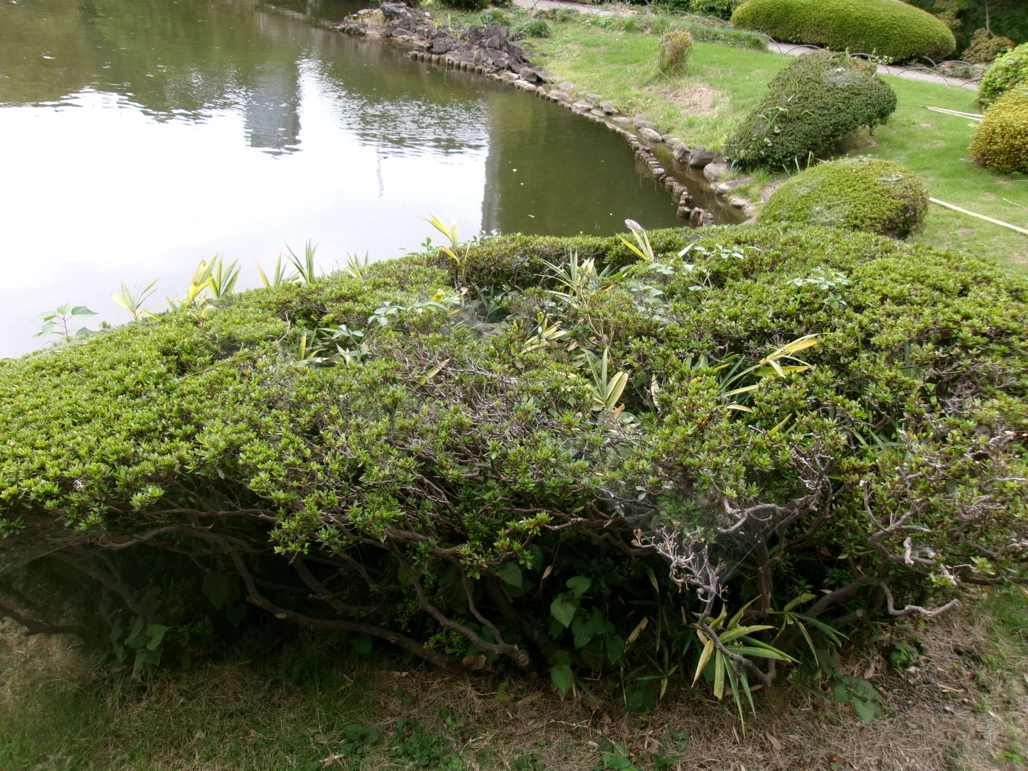 ボケの枝が伸びて大きくなっている(上の池南側)