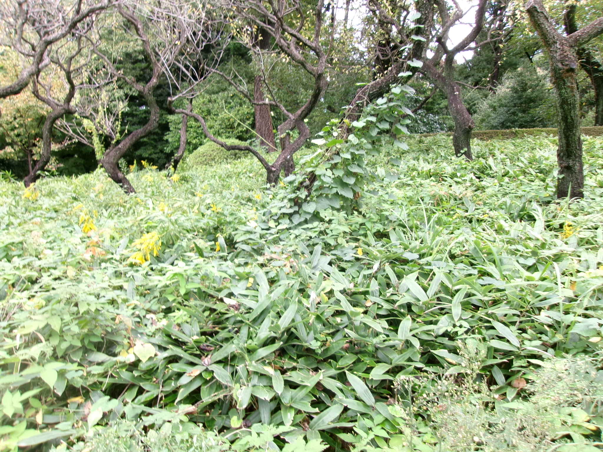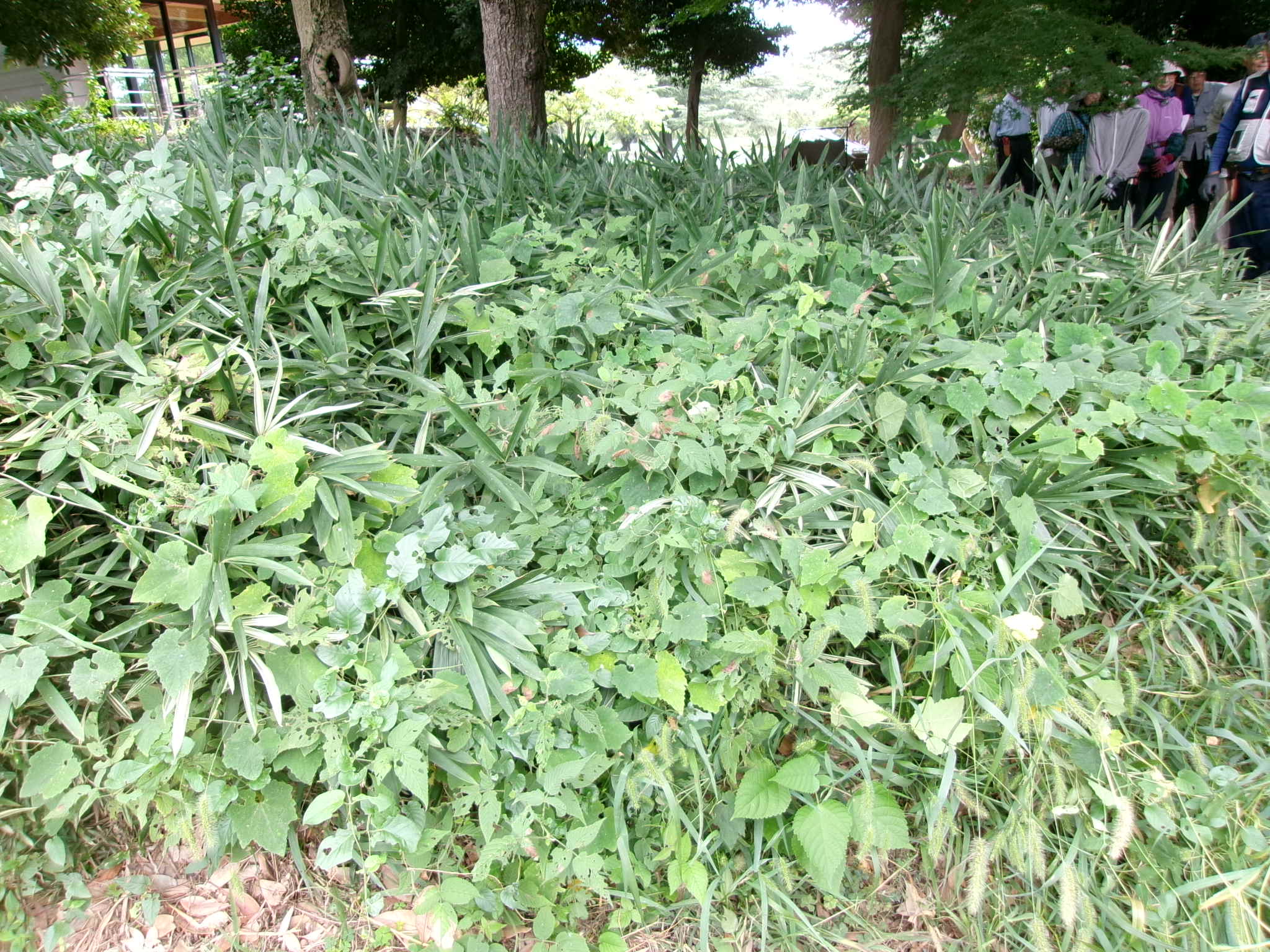 ホトトギスの周りに雑草が繁茂(大作り手前)