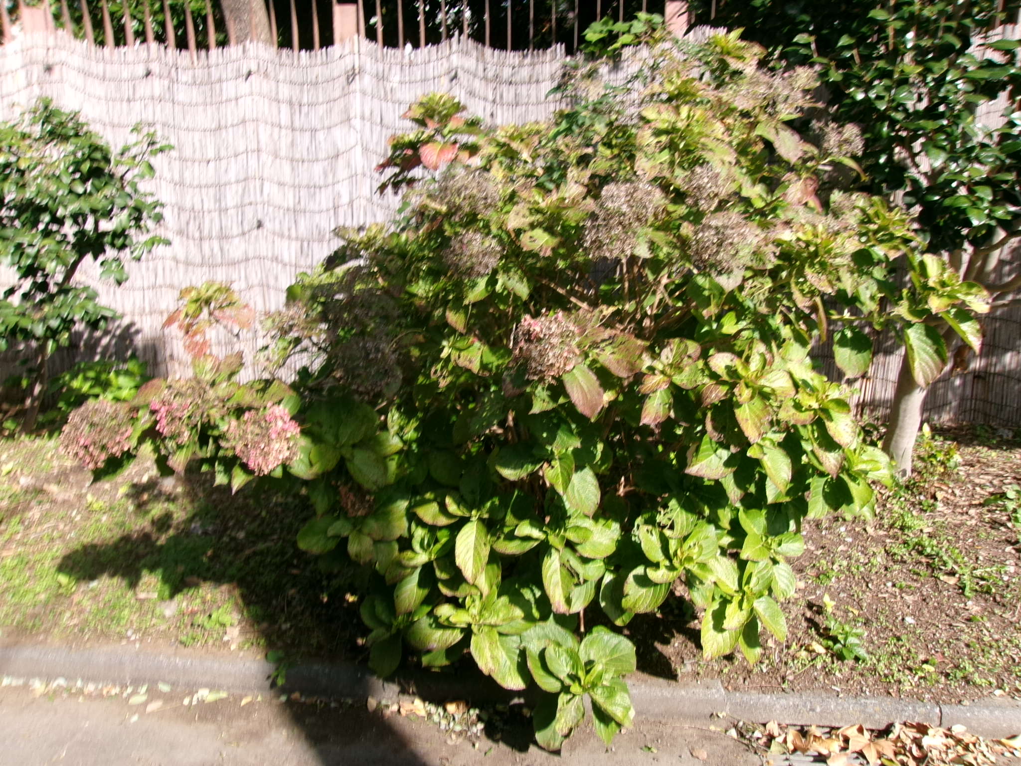 アジサイは花柄をまったく摘み取っていない為、汚らしいし形が乱れている