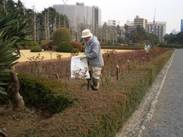 開花時の姿を浮かべ、芽摘みを行う。