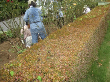 西園西南側ハイブリッドティーの剪定の手解きを受ける