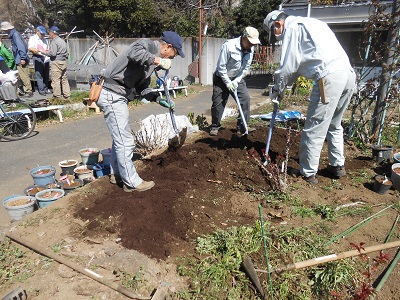 ■作業 ・圃場 接ぎ木鉢植え→圃場移植作業