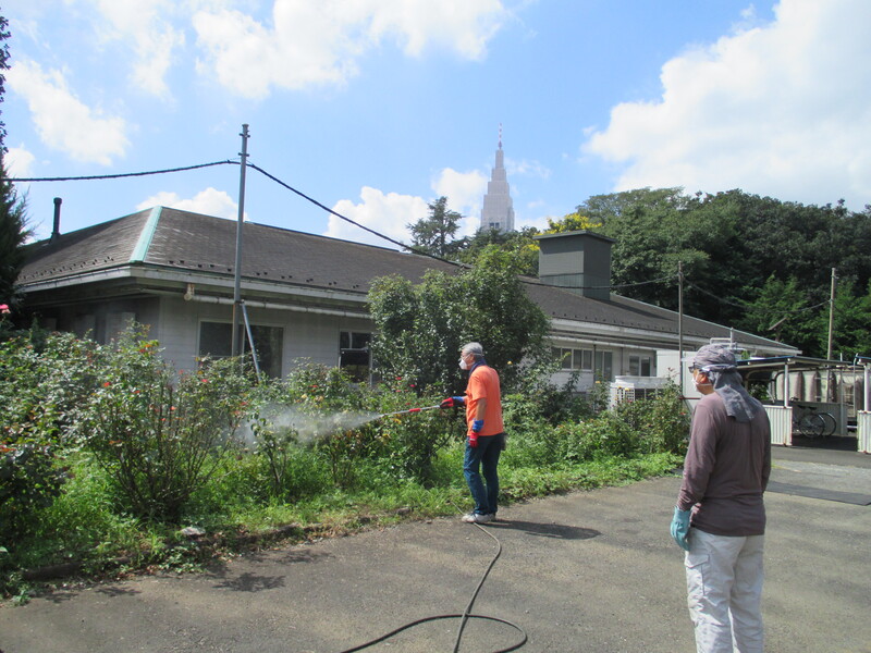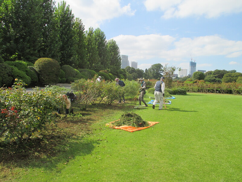 ・バラ花壇全体に芽だし肥料として、化成肥料の追肥を行った。