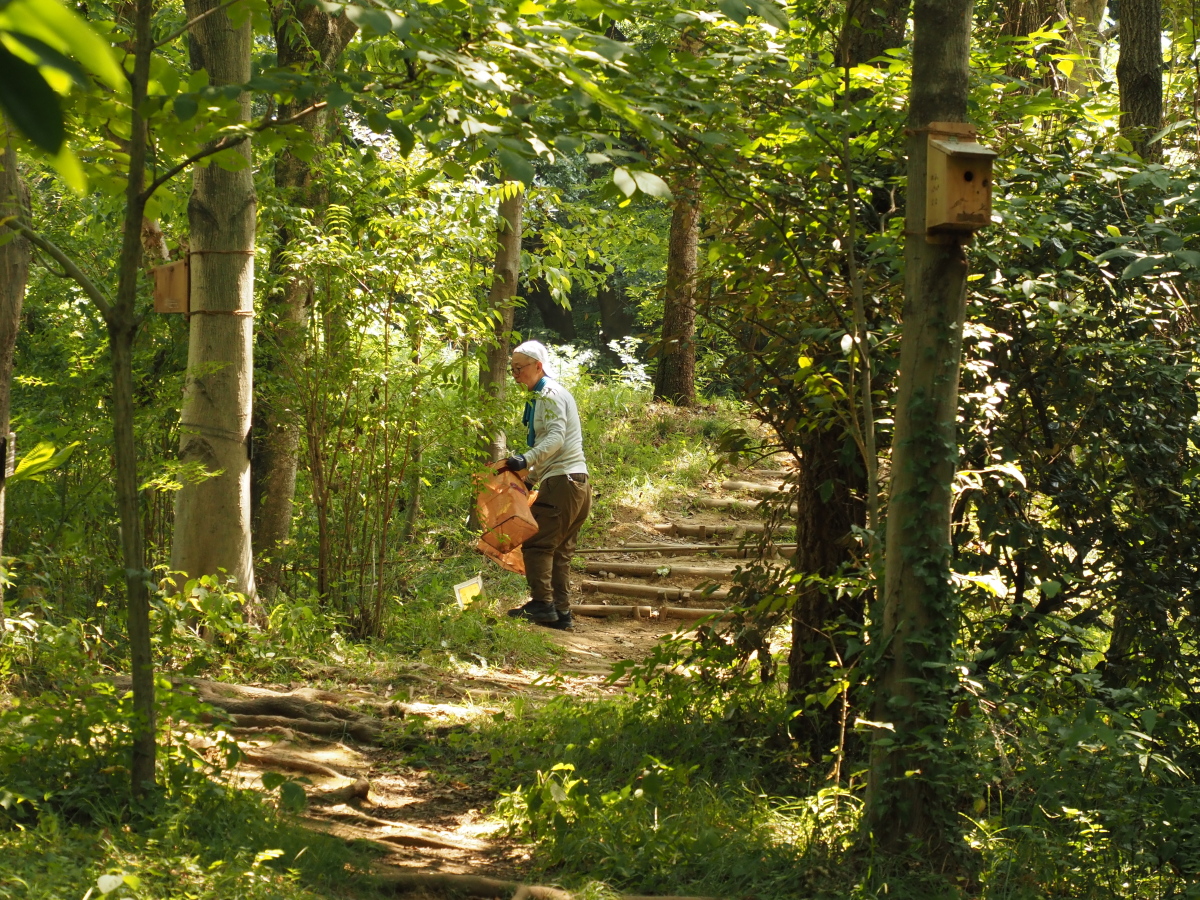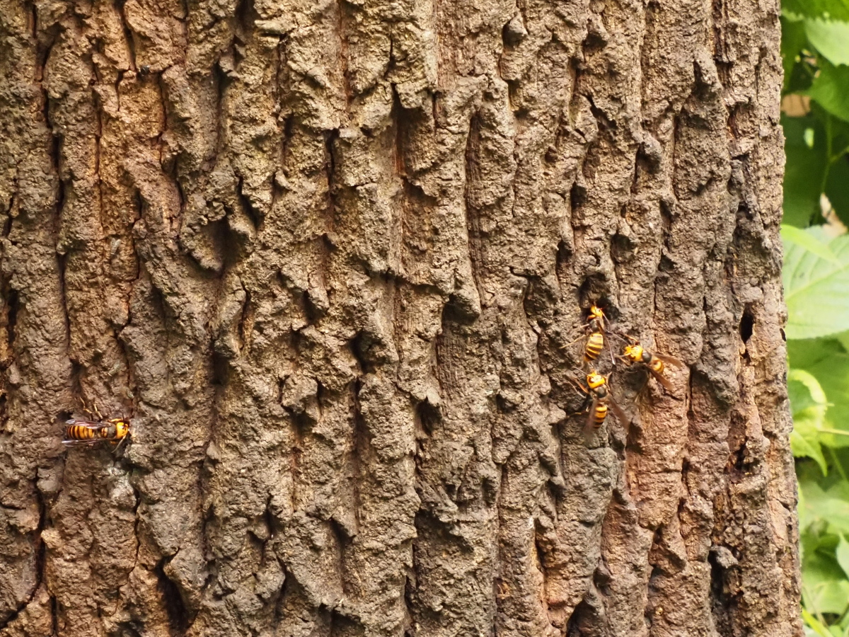 8月12日 スズメバチがくぬぎ通りのくぬぎの木に集まっていました。昨年より少ないようです。