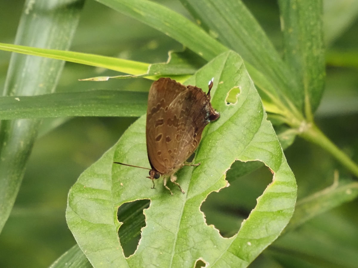 8月12日 西休憩所裏でムラサキツバメを見かけました。羽の後ろが突起状になっているのが特徴です。