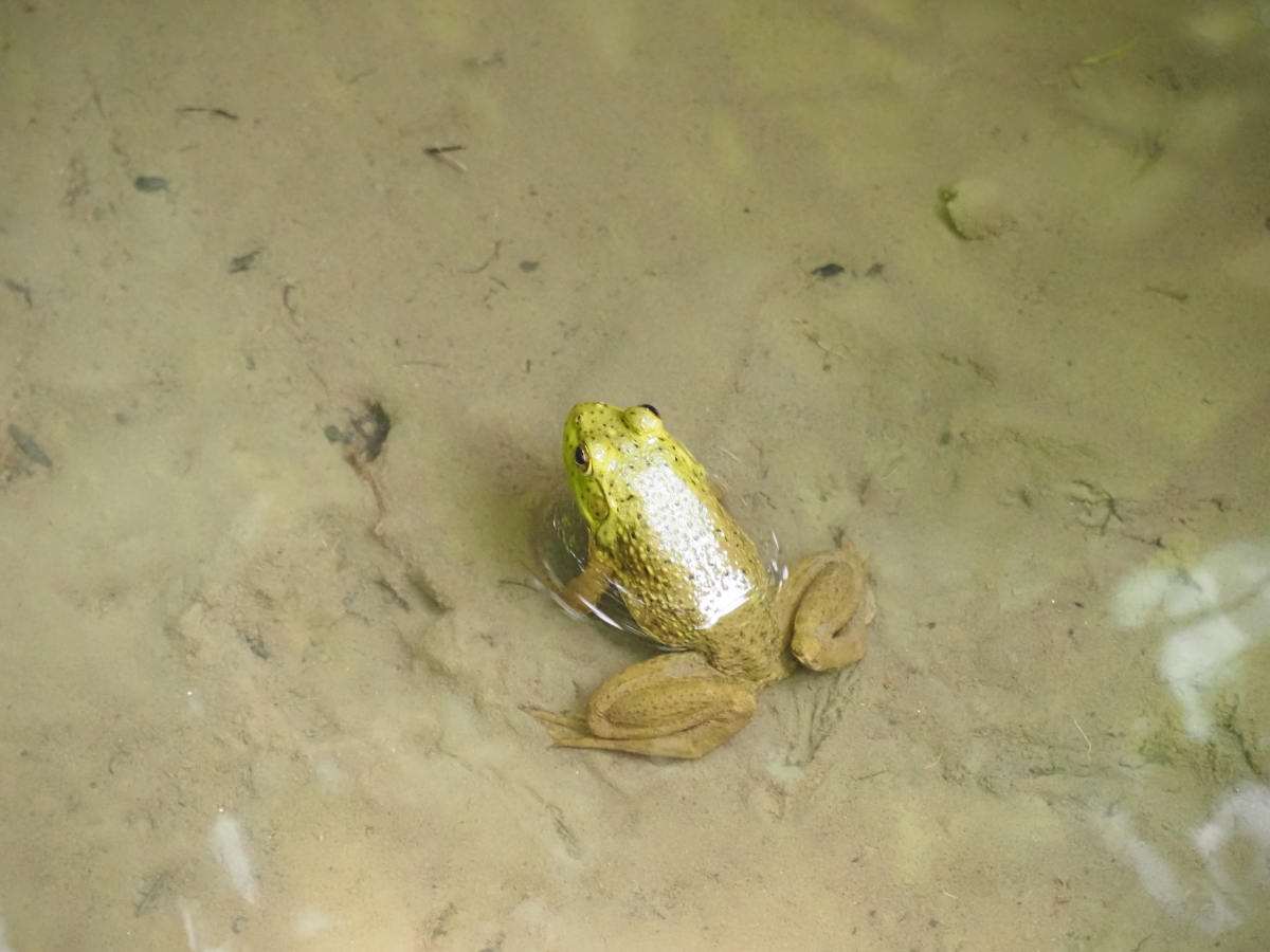 8月18日 上の池で今年オタマジャクシからウシガエルになった個体を見かけました。捕獲は難しい。