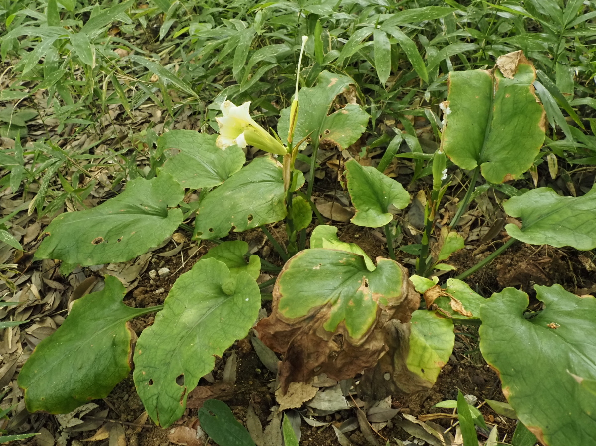 8月18日 トイレ裏の林の中に移植したウバユリが咲いていました。
