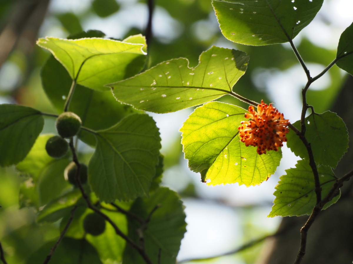 8月18日 カジノキの実が熟してオレンジ色になっていました。