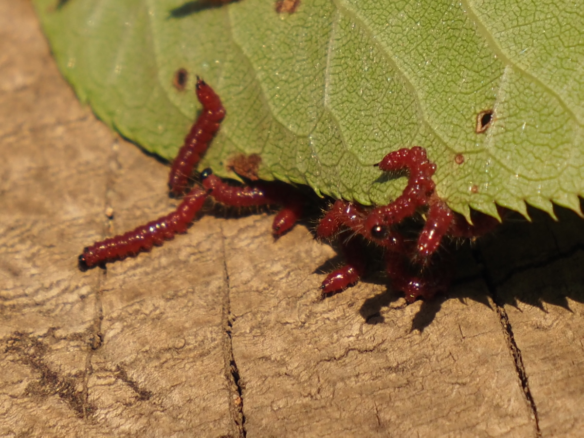 8月18日 西休憩所の裏の桜の木の葉2枚にモンクロシャチホコの幼虫が密生していました。駆除しました。ほかには見当たりませんでした。
