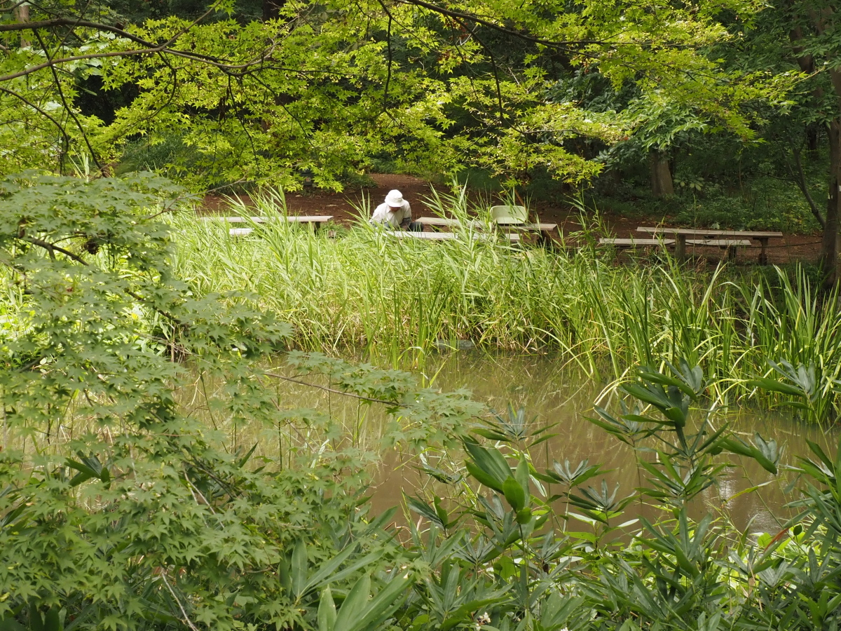 8月4日 上の池でメダカを見かけました。御苑内から放流された魚が順調に育っているようです。