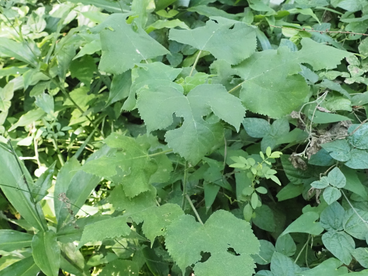 9月22日、ラクウショウの森の壁側でつる植物、ヤブミョウガ抜き取り