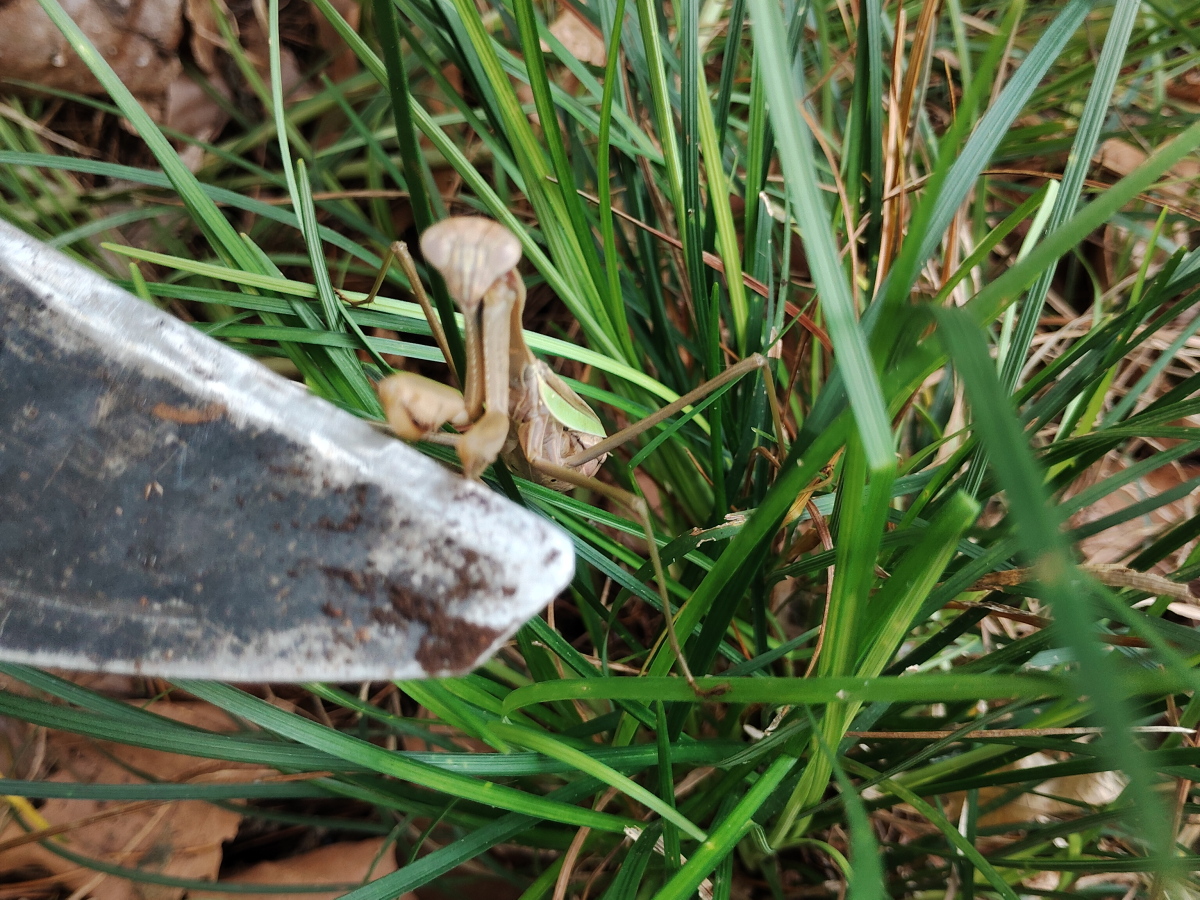 9月16日、カマキリ(雌)をカマに載せて引っ越し