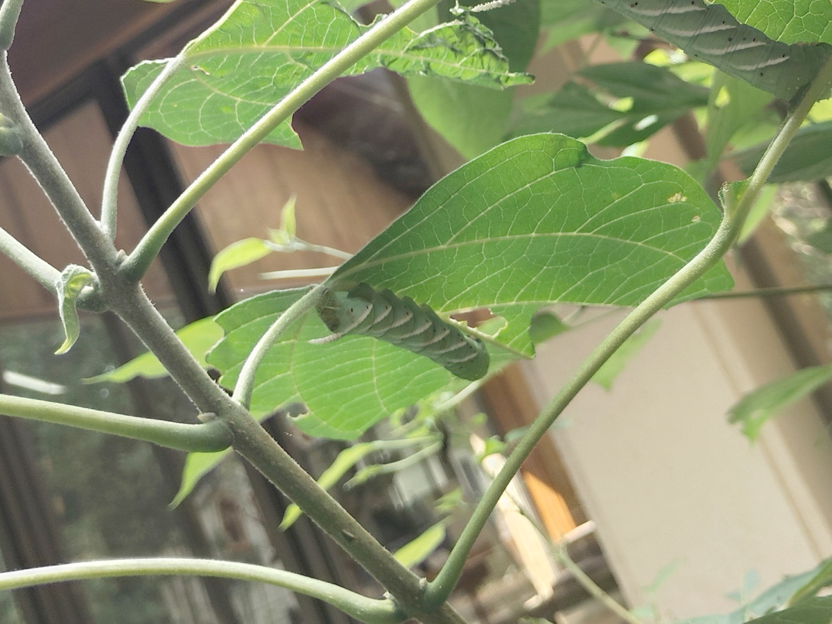 9月16日、シモフリスズメの幼虫が食事中