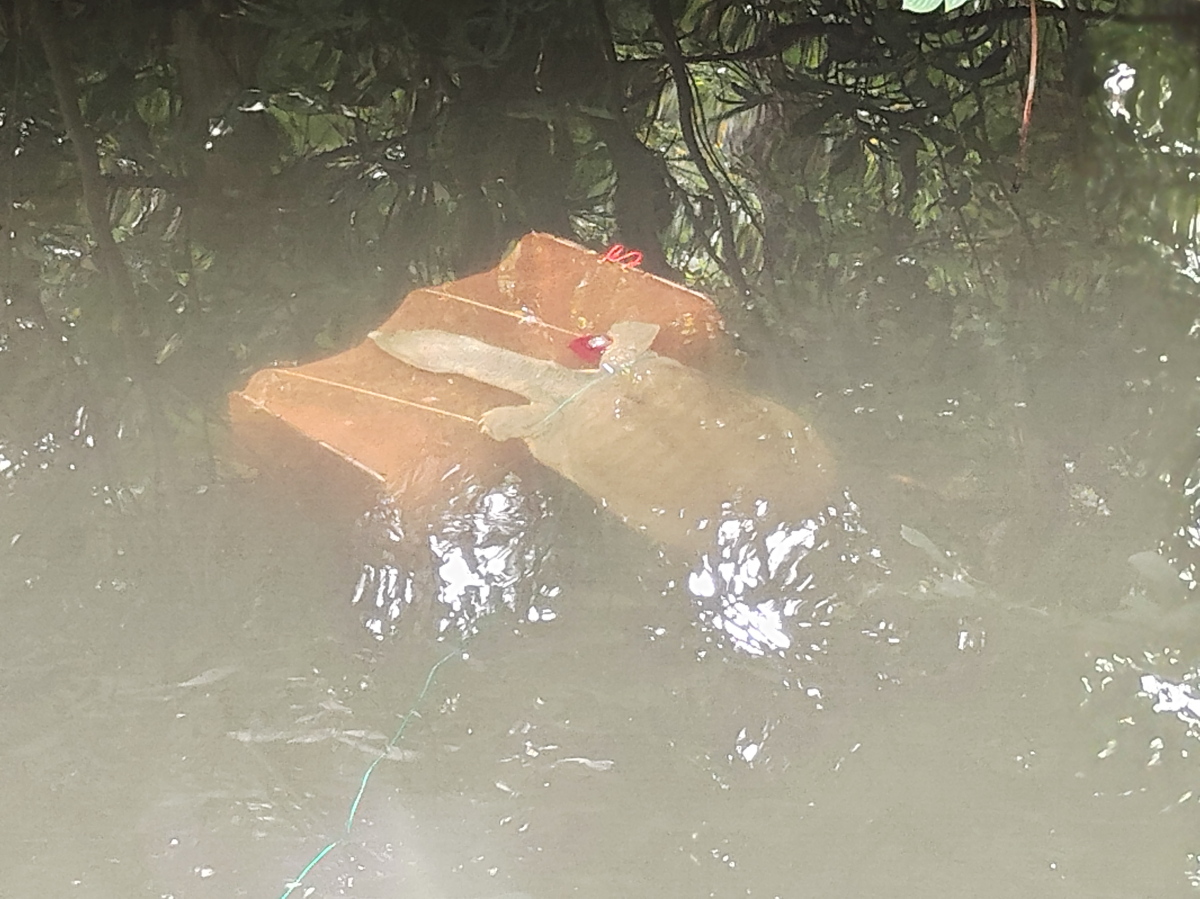 9月16日、スッポンがアメリカザリガニの籠に乗っていました