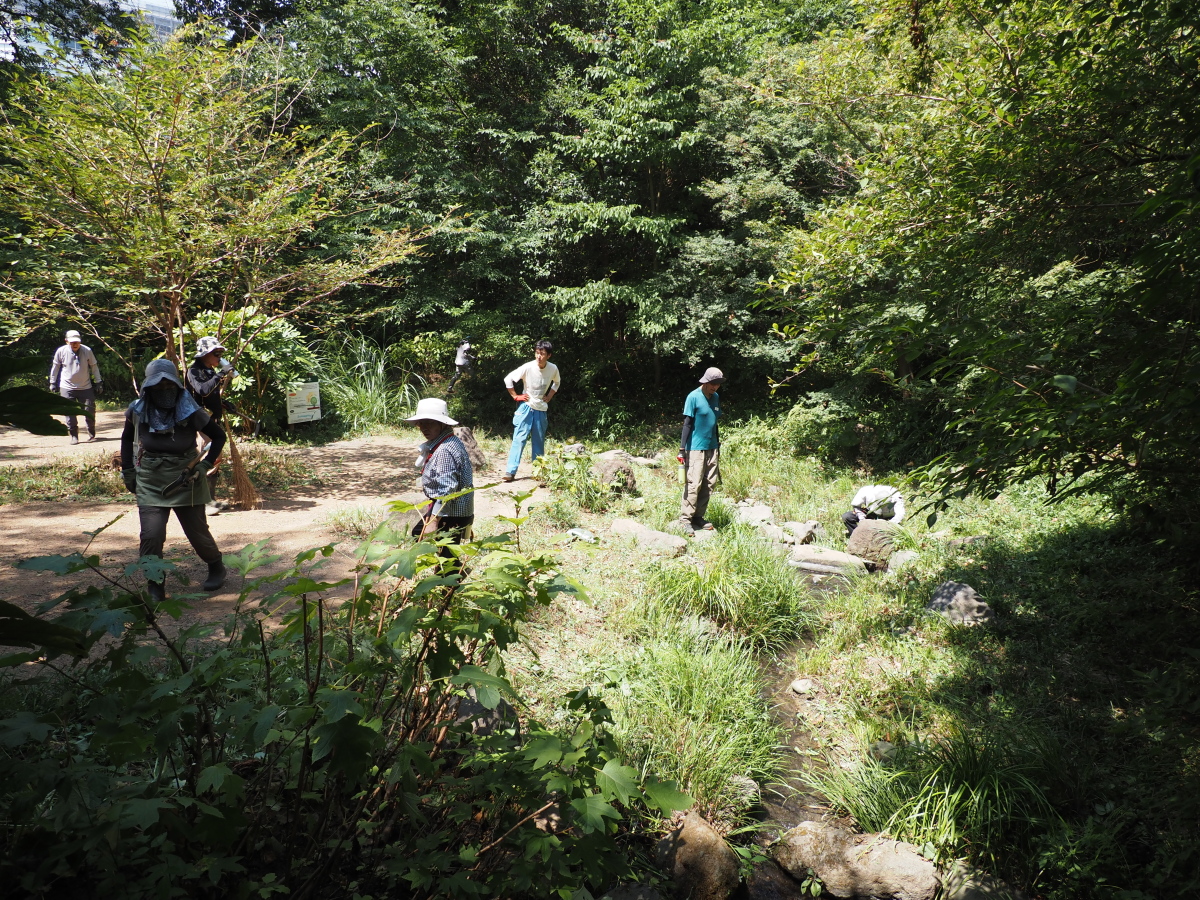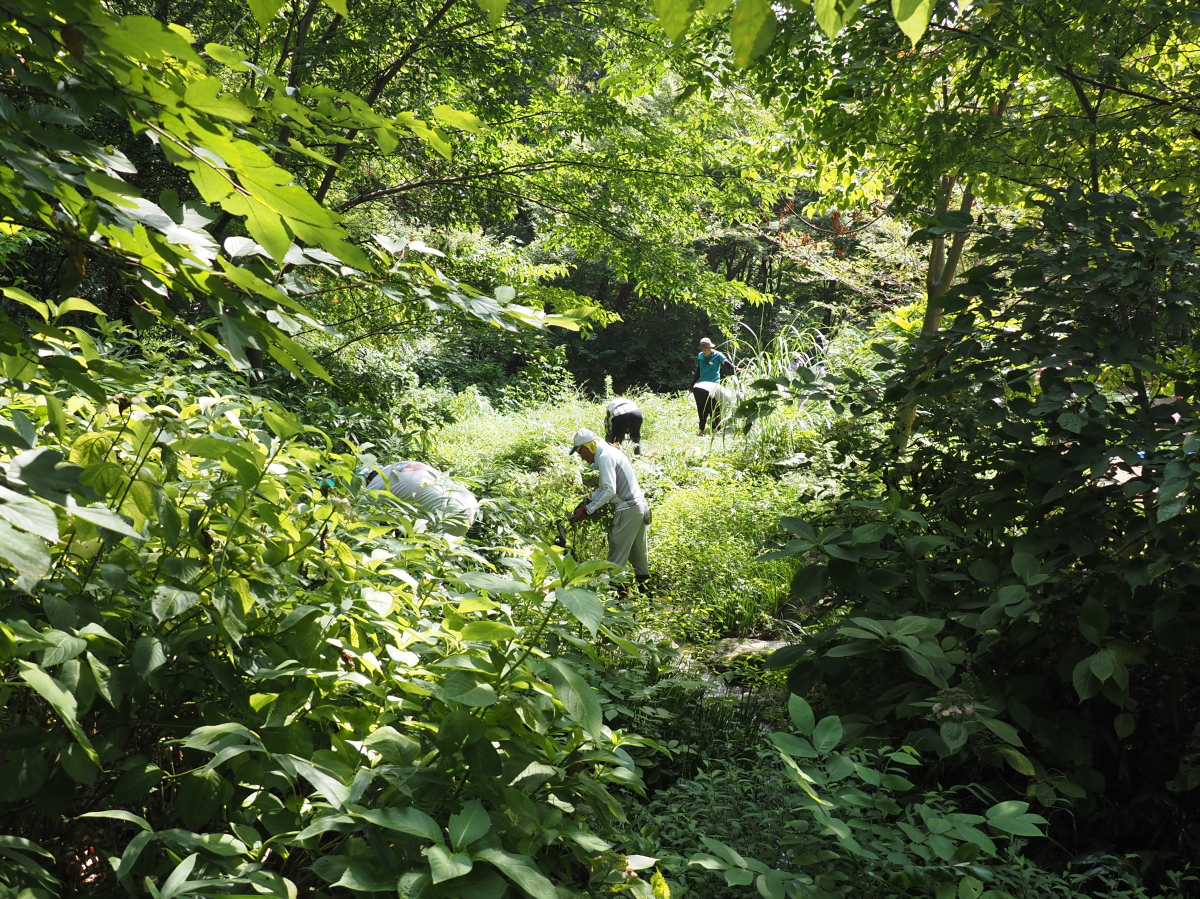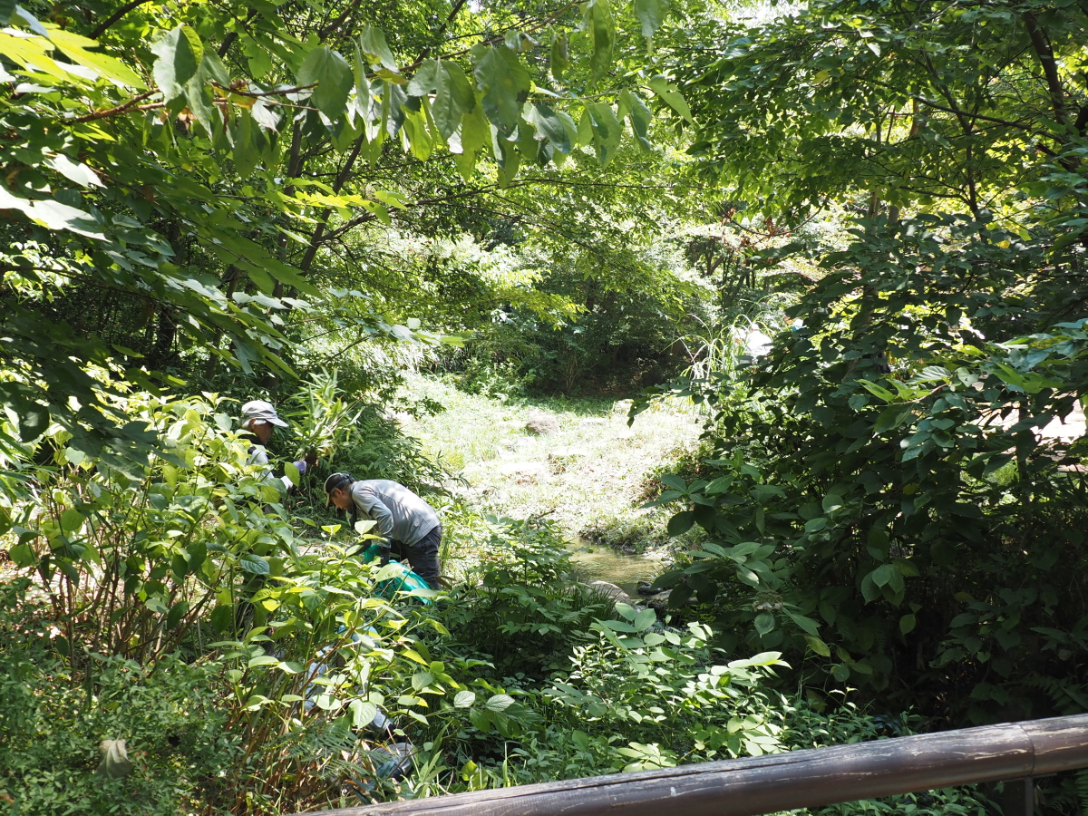 9月1日、せせらぎ沿いの草刈り