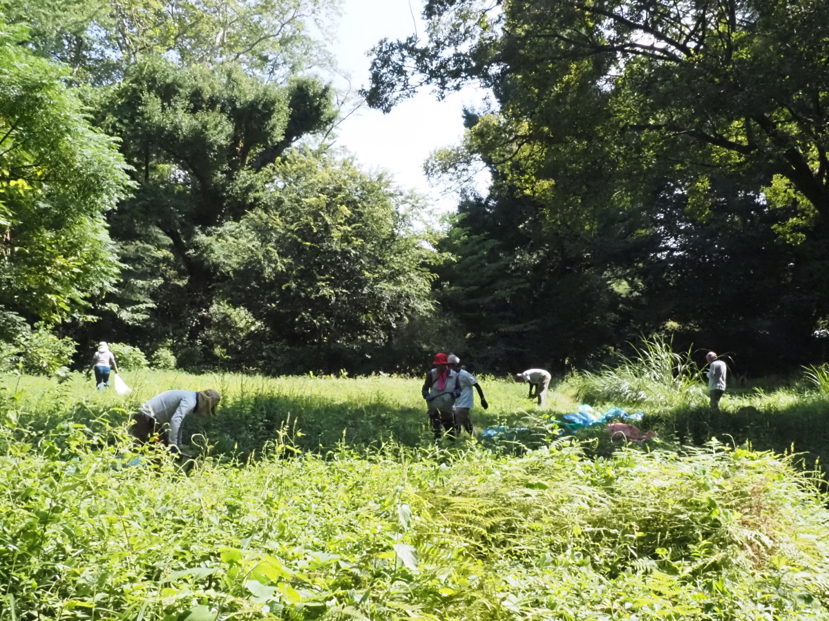 9月29日、くさはら広場で下草刈りとつる植物の撤去