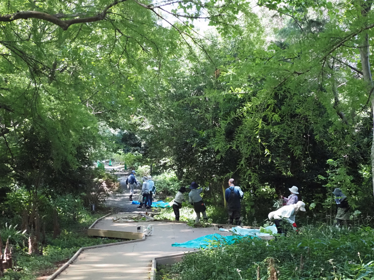 - 下草刈り・ツル植物除去(築山南斜面、西休憩所周辺、くさはら広場北側)
