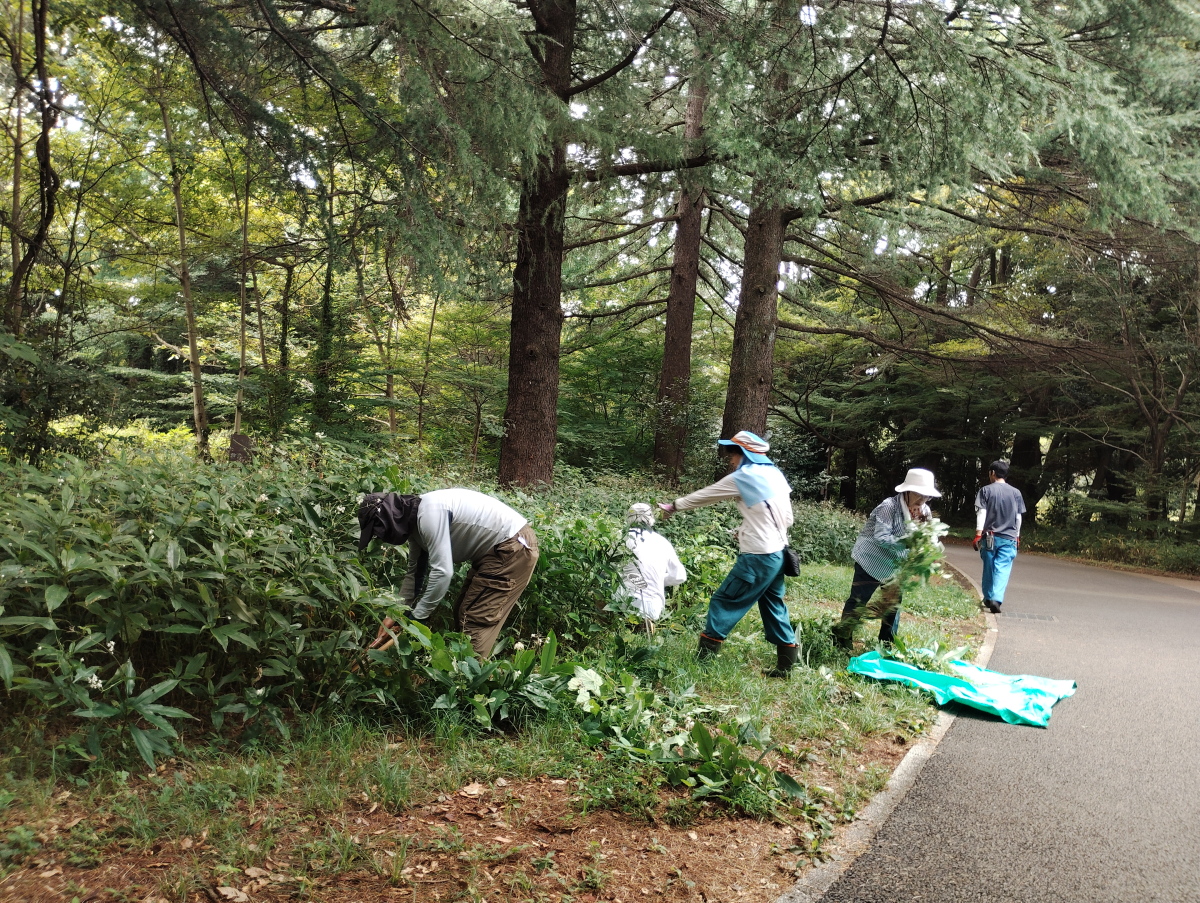 9月8日、ラクウショウの森の下草刈り